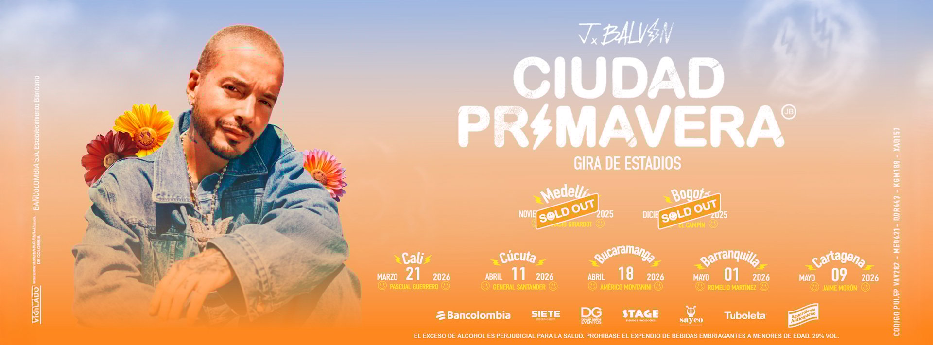 J BALVIN | CIUDAD PRIMAVERA - GIRA LOS ESTADIOS 2026 Desde 21 Mar Sáb 21 Mar Hasta 9 Mayo Sáb 9 Mayo J BALVIN | CIUDAD PRIMAVERA - GIRA LOS ESTADIOS 2026 18 Dic Jue