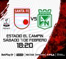 SANTA FE VS NACIONAL 2026-1 Estadio El Campín Bogotá 25 Feb Mié 25 Feb SANTA FE VS NACIONAL 2026-1 Bogotá 5 Feb Jue