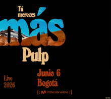 . Destacados HOMBRES G | LOS MEJORES AÑOS DE NUESTRA VIDA Movistar Arena Bogotá 24 Oct Sáb 24 Oct HOMBRES G | LOS MEJORES AÑOS DE NUESTRA VIDA Bogotá 16 Feb Lun KALI UCHIS | THE SINCERELY TOUR Movistar Arena Bogotá 18 Feb Mié 18 Feb KALI UCHIS | THE SINCERELY TOUR Bogotá 16 Feb Lun PULP | TÚ MERECES MÁS Movistar Arena Bogotá 6 Jun Sáb 6 Jun PULP | TÚ MERECES MÁS Bogotá 16 Feb Lun Laura Pérez: La Chinita Teatro Jorge Eliécer Gaitán Bogotá 30 Jul Jue 30 Jul Laura Pérez: La Chinita Bogotá 16 Feb Lun JULIANA Y LA ORQUESTA DE LUCHO BERMÚDEZ | LA ÚLTIMA NOCHE DE LA PISTA Movistar Arena Bogotá 22 Feb Dom 22 Feb JULIANA Y LA ORQUESTA DE LUCHO BERMÚDEZ | LA ÚLTIMA NOCHE DE LA PISTA Bogotá 16 Feb Lun JOWELL Y RANDY | 3D Movistar Arena Bogotá 28 Feb Sáb 28 Feb JOWELL Y RANDY | 3D Bogotá 16 Feb Lun FESTIVAL PA´ GOZAR Y CANTAR 2.0 Estadio El Campín Bogotá 28 Feb Sáb 28 Feb FESTIVAL PA´ GOZAR Y CANTAR 2.0 Bogotá 16 Feb Lun GRUPO FIRME | LA ÚLTIMA PEDA 2026 - BUCARAMANGA ESTADIO JOSÉ AMÉRICO MONTANINI Bucaramanga 8 Ago Sáb 8 Ago GRUPO FIRME | LA ÚLTIMA PEDA 2026 - BUCARAMANGA Bucaramanga 16 Feb Lun MORAT | YEM WORLD TOUR - YA ES MAÑANA Movistar Arena Bogotá Desde 14 Ago Vie 14 Ago Hasta 23 Ago Dom 23 Ago MORAT | YEM WORLD TOUR - YA ES MAÑANA Bogotá 16 Feb Lun CARLOS VIVES & LA PROVINCIA | TOUR AL SOL Movistar Arena Bogotá Desde 25 Sep Vie 25 Sep Hasta 27 Sep Dom 27 Sep CARLOS VIVES & LA PROVINCIA | TOUR AL SOL Bogotá 16 Feb Lun DON'T LET DADDY KNOW - DLDK 2026 Movistar Arena Bogotá 1 Mayo Vie 1 Mayo DON'T LET DADDY KNOW - DLDK 2026 Bogotá 16 Feb Lun MOLAN LOS 2000 BOGOTÁ Movistar Arena - Bogotá - Dg. 61c #26-36 Bogotá 10 Jul Vie 10 Jul MOLAN LOS 2000 BOGOTÁ Bogotá 16 Feb Lun JOSÉ CARRERAS | GIRA DESPEDIDA MUNDIAL Movistar Arena Bogotá 13 Mayo Mié 13 Mayo JOSÉ CARRERAS | GIRA DESPEDIDA MUNDIAL Bogotá 16 Feb Lun Mostrar más eventos Conciertos CLÁSICOS DEL ROCK EN ESPAÑOL SINFÓNICO Teatro El Tesoro Medellín 21 Feb Sáb 21 Feb CLÁSICOS DEL ROCK EN ESPAÑOL SINFÓNICO Medellín 16 Feb Lun El Death Metal se Toma El Ensueño - No Raza (USA/Col) Teatro el Ensueño - Tv 70 D # 60 - 90 sur, Bogotá Bogotá 21 Feb Sáb 21 Feb El Death Metal se Toma El Ensueño - No Raza (USA/Col) Bogotá 16 Feb Lun SOMBRAS NADA MÁS - TRIBUTO A JAVIER SOLÍS Teatro Cafam - Av. Car 68 No. 90 - 88 Bogotá Desde 7 Mar Sáb 7 Mar Hasta 8 Mar Dom 8 Mar SOMBRAS NADA MÁS - TRIBUTO A JAVIER SOLÍS Bogotá 16 Feb Lun BRYAN ADAMS | ROLL WITH THE PUNCHES Movistar Arena Bogotá 20 Mar Vie 20 Mar BRYAN ADAMS | ROLL WITH THE PUNCHES Bogotá 16 Feb Lun GALY GALIANO | LA ULTIMA Y NOS VAMOS TOUR 2026 Movistar Arena Bogotá 30 Abr Jue 30 Abr GALY GALIANO | LA ULTIMA Y NOS VAMOS TOUR 2026 Bogotá 16 Feb Lun EDEN MUÑOZ Movistar Arena Bogotá 2 Mayo Sáb 2 Mayo EDEN MUÑOZ Bogotá 16 Feb Lun SIN BANDERA | ESCENAS TOUR Movistar Arena Bogotá 4 Jun Jue 4 Jun SIN BANDERA | ESCENAS TOUR Bogotá 16 Feb Lun Escenarios Movistar Arena Dg. 61c #26-36, Teusaquillo Teatro CAFAM Ak 68 #90 - 88 Teatro Mayor Julio Mario Santo Domingo Cl. 170 #67-51 Teatro Colsubsidio Av. El Dorado #25-40, Bogotá Teatro Jorge Eliécer Gaitán Cra. 7 #22-47, Santa Fé, Bogotá. Centro Nacional de las Artes Cl. 11 #5 - 60 Teatro Metropolitano Cl. 41 # 57 - 30, La Candelaria, Medellín. Teatro Astor Plaza Cl. 67 #11 – 58 Teatro El Tesoro Carrera 25A # 1A Sur - 45 Medellín. Auditorio Fabio Lozano Cra. 4 #Carrera 4 # 22 - 61, La Candelaria, Bogotá Cinemateca Cra. 3 #19-10, Santa Fé Planetario de Bogotá Calle 26B No. 5-93 Maloka Centro Interactivo Maloka, Cra. 68d #24A - 51 Teatro El Ensueño Tv. 70 D #60-90, Sur, Bogotá Sala de Conciertos de la Biblioteca Luis Angel Arango Cl. 11 #14, Bogotá. Teatro El Parque Cra. 5 # 36 - 05 Planetario de Cali - Yawa Cra. 37a #5- 27, Cali Teatro Santander Cl. 33 #18-60 Teatro Los Muñequitos de Matanzas Teatro Colsubsidio Bogotá 20 Feb Vie 20 Feb Los Muñequitos de Matanzas Bogotá 16 Feb Lun FIAV | FESTIVAL INTERNACIONAL DE LAS ARTES VIVAS 2026 Desde 27 Mar Vie 27 Mar Hasta 5 Abr Dom 5 Abr FIAV | FESTIVAL INTERNACIONAL DE LAS ARTES VIVAS 2026 12 Feb Jue BLANCO Centro Nacional de las artes - Sala Fanny Mikey Bogotá Desde 25 Feb Mié 25 Feb Hasta 1 Mar Dom 1 Mar BLANCO Bogotá 16 Feb Lun Orquesta Sinfónica Nacional de Colombia Teatro Mayor Julio Mario Santo Domingo Bogotá 8 Mar Dom 8 Mar Orquesta Sinfónica Nacional de Colombia Bogotá 16 Feb Lun EL VIZCONDE Teatro Metropolitano de Medellín Medellín 5 Mar Jue 5 Mar EL VIZCONDE Medellín 16 Feb Lun Yerma Centro Nacional de las artes - Sala Delia Zapata La candelaria Desde 13 Mar Vie 13 Mar Hasta 15 Mar Dom 15 Mar Yerma La candelaria 16 Feb Lun Deportes THE FAMILY RUN FESTIVAL 2026 Parque La Marina Cartagena 31 Mayo Dom 31 Mayo THE FAMILY RUN FESTIVAL 2026 Cartagena 16 Feb Lun ABONOS SANTA FE COPA LIBERTADORES 2026 Estadio El Campín Bogotá Desde 8 Feb Dom 8 Feb Hasta 17 Mar Mar 17 Mar ABONOS SANTA FE COPA LIBERTADORES 2026 Bogotá 16 Feb Lun SANTA FE VS NACIONAL 2026-1 Estadio El Campín Bogotá 25 Feb Mié 25 Feb SANTA FE VS NACIONAL 2026-1 Bogotá 16 Feb Lun AMÉRICA DE CALI VS JAGUARES 2026-1 Estadio Pascual Guerrero Cali 22 Feb Dom 22 Feb AMÉRICA DE CALI VS JAGUARES 2026-1 Cali 16 Feb Lun Familia & Experiencias CONGRESO INTERNACIONAL DE MÚSICA - MEDELLÍN MUSIC WEEK Rivana Business Park Medellin Desde 18 Feb Mié 18 Feb Hasta 19 Feb Jue 19 Feb CONGRESO INTERNACIONAL DE MÚSICA - MEDELLÍN MUSIC WEEK Medellin 16 Feb Lun CONDUCTA DELICTIVA - UNA EXPERIENCIA CARCELARIA Teatro Astor Plaza Bogotá 20 Mar Vie 20 Mar CONDUCTA DELICTIVA - UNA EXPERIENCIA CARCELARIA Bogotá 16 Feb Lun Liderazgo de Alto Impacto para Mujeres El Cubo Colsubsidio - Avenida Carrera 30 # 52-77 Bogotá 26 Feb Jue 26 Feb Liderazgo de Alto Impacto para Mujeres Bogotá 16 Feb Lun MENTES EXPERTAS DE BORJA VILASECA EN BOGOTÁ Teatro Colsubsidio Bogotá 12 Mar Jue 12 Mar MENTES EXPERTAS DE BORJA VILASECA EN BOGOTÁ Bogotá 16 Feb Lun MARIO ALONSO PUIG - H