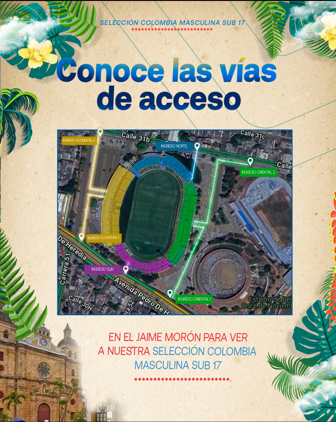 CARTAGENA ESTADIO JAIME MORÓN JORNADAPARTIDOSFECHATARJETA NACIONALTARJETA INTERNACIONAL27 - 28 Venezuela vs Chile - 16:00 Colombia vs Brasil - 19:00 Sábado 12 de abrilComprarComprar Todos los asistentes deben ingresar con boletaEdad Mínima: 5 Años Responsable: FEDERACIÓN COLOMBIANA DE FÚTBOLNit.: 860.033.879-9