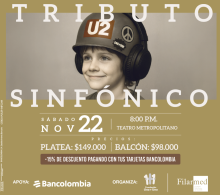 TRIBUTO SINFÓNICO U2 Teatro Metropolitano de Medellín Medellín 22 Nov Sáb 22 Nov TRIBUTO SINFÓNICO U2 Medellín 16 Oct Jue