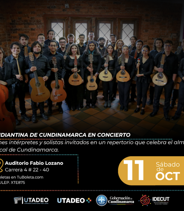 Mina//Mata Grupo Teatro Tierra Auditorio Fabio Lozano Bogotá 10 Oct Vie 10 Oct MARCOS WITT | LEGADO - BUCARAMANGA (CANCELADO) CENTRO DE EVENTOS CENFER Bucaramanga 10 Oct Vie 10 Oct ANIME Teatro Jorge Eliécer Gaitán Bogotá 11 Oct Sáb 11 Oct Iván Villazón Teatro Mayor Julio Mario Santo Domingo BOGOTÁ 11 Oct Sáb 11 Oct Tomorrow Comes The Harvest Jeff Mills Planetario de Bogotá Bogotá Desde 11 Oct Sáb 11 Oct Hasta 12 Oct Dom 12 Oct Concierto Estudiantina de Cundinamarca Auditorio Fabio Lozano Bogotá 11 Oct Sáb 11 Oct Orquesta Filarmónica Juvenil. Director: Carlos Ágreda. Teatro Estudio - Julio Mario Santo Domingo Bogotá 12 Oct Dom 12 Oct Mostrar más eventos