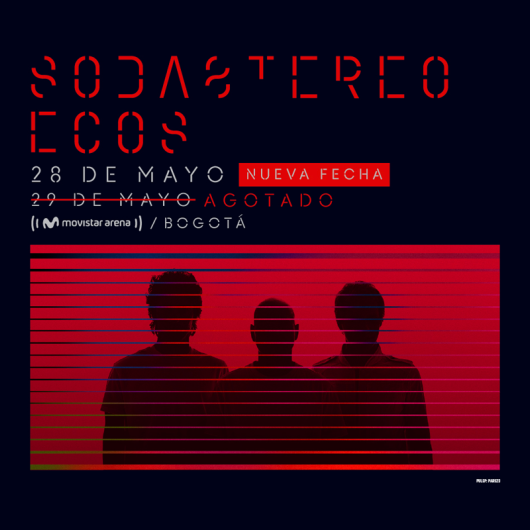 Destacados SODA STEREO | ECOS - SEGUNDA FECHA Movistar Arena Bogotá 28 Mayo Jue 28 Mayo Nicolás Picón (Colombia), contratenor Sala de Conciertos de la Biblioteca Luis Ángel Arango Bogotá 28 Mayo Jue 28 Mayo SODA STEREO | ECOS Movistar Arena Bogotá 29 Mayo Vie 29 Mayo SODA STEREO | ECOS - TERCERA FECHA Movistar Arena Bogotá 30 Mayo Sáb 30 Mayo Célimène Daudet (Francia/Haití), piano Sala de Conciertos de la Biblioteca Luis Ángel Arango Bogotá 03 Jun Mié 03 Jun POMME Teatro Colsubsidio Bogotá 04 Jun Jue 04 Jun 'Before Breakfast' Teatro Estudio - Julio Mario Santo Domingo Bogotá 05 Jun Vie 05 Jun Mostrar más eventos