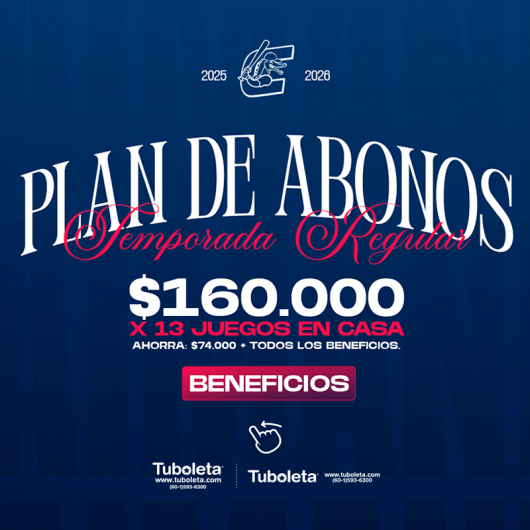 ABONO CAIMANES 2025/2026 Estadio Edgar Renteria Barranquilla Desde 28 Nov Vie 28 Nov Hasta 10 Ene Sáb 10 Ene Liga Profesional de Béisbol 2025/2026 - CAIMANES Estadio Edgar Renteria Barranquilla Desde 28 Nov Vie 28 Nov Hasta 10 Ene Sáb 10 Ene AMÉRICA DE CALI VS NACIONAL 2025-2 Estadio Pascual Guerrero Cali 08 Dic Lun 08 Dic SANTA FE VS BUCARAMANGA 2025-2 Estadio El Campín Bogotá 08 Dic Lun 08 Dic TOROS POR BOGOTA HOY Y SIEMPRE, DEFENDIENDO UN LEGADO. Plaza De Toros Marruecos Puente de Piedra Subachoque 17 Ene Sáb 17 Ene