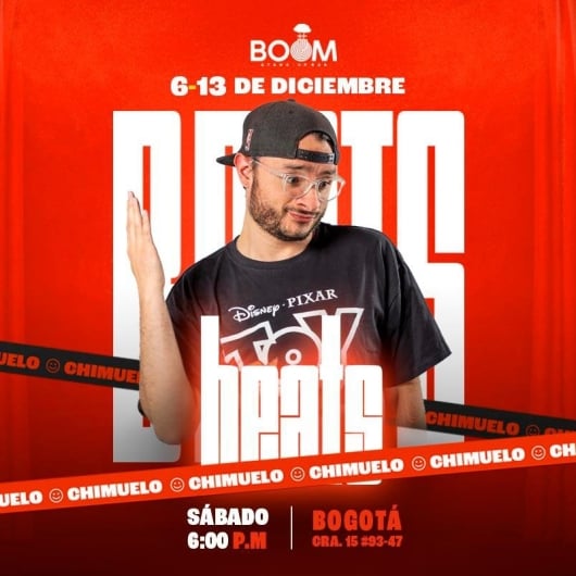 BEATS - CHIMUELO DICIEMBRE Boom Stand Up Bar - Bogotá Bogotá Desde 06 Dic Sáb 06 Dic Hasta 13 Dic Sáb 13 Dic
