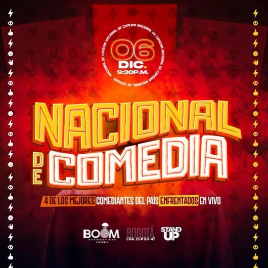 Destacados BEATS - CHIMUELO DICIEMBRE Boom Stand Up Bar - Bogotá Bogotá Desde 06 Dic Sáb 06 Dic Hasta 13 Dic Sáb 13 Dic NACIONAL DE COMEDIA Boom Stand Up Bar - Bogotá Bogotá 06 Dic Sáb 06 Dic MALA CRÍA - MEDELLÍN BOOM STAND UP BAR - Cl. 26 #43g-30 BARRIO COLOMBIA Medellín 06 Dic Sáb 06 Dic Cosas pequeñas y extraordinarias Centro Nacional de las artes - Sala Delia Zapata Cll11# 5-60 Bogotá 07 Dic Dom 07 Dic EL MESIAS J.F HANDEL Teatro Metropolitano de Medellín Medellín 10 Dic Mié 10 Dic LO QUE SE PERMITE SE REPITE - BOGOTÁ 11DIC AUDITORIO UNIVERSIDAD E.A.N. Bogotá 11 Dic Jue 11 Dic COQUETA - MEDELLÍN BOOM STAND UP BAR - Cl. 26 #43g-30 BARRIO COLOMBIA Medellín 11 Dic Jue 11 Dic Mostrar más eventos Movistar Arena Dg. 61c #26-36, Teusaquillo Teatro Julio Mario Santodomingo Cl. 170 #67-51 Teatro Colsubsidio Av. El Dorado #25-40, Bogotá Maloka Centro Interactivo Maloka, Cra. 68d #24A - 51 Teatro CAFAM Ak 68 #90 - 88 Centro Nacional de las Artes Cl. 11 #5 - 60 Teatro Metropolitano Cl. 41 # 57 - 30, La Candelaria, Medellín. Teatro El Tesoro Carrera 25A # 1A Sur - 45 Medellín. Teatro El Ensueño Tv. 70 D #60-90, Sur, Bogotá Teatro Jorge Eliécer Gaitán Cra. 7 #22-47, Santa Fé, Bogotá. Teatro La Concha Calle 4 #10-48, Cali