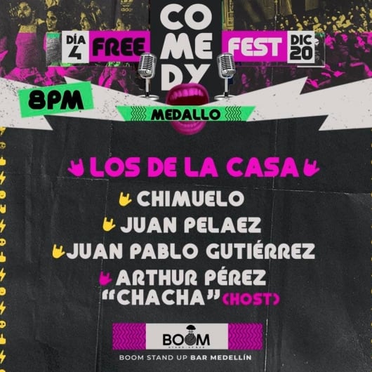 FREE COMEDY FEST - MEDELLIN - DIC 20 BOOM STAND UP BAR - Cl. 26 #43g-30 BARRIO COLOMBIA Medellín 20 Dic Sáb 20 Dic