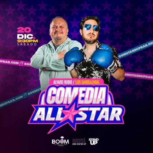 COMEDIA ALL STAR - ALVARO RUBIO - LUIS GARDEAZABAL (DIC) Boom Stand Up Bar - Bogotá Bogotá 20 Dic Sáb 20 Dic