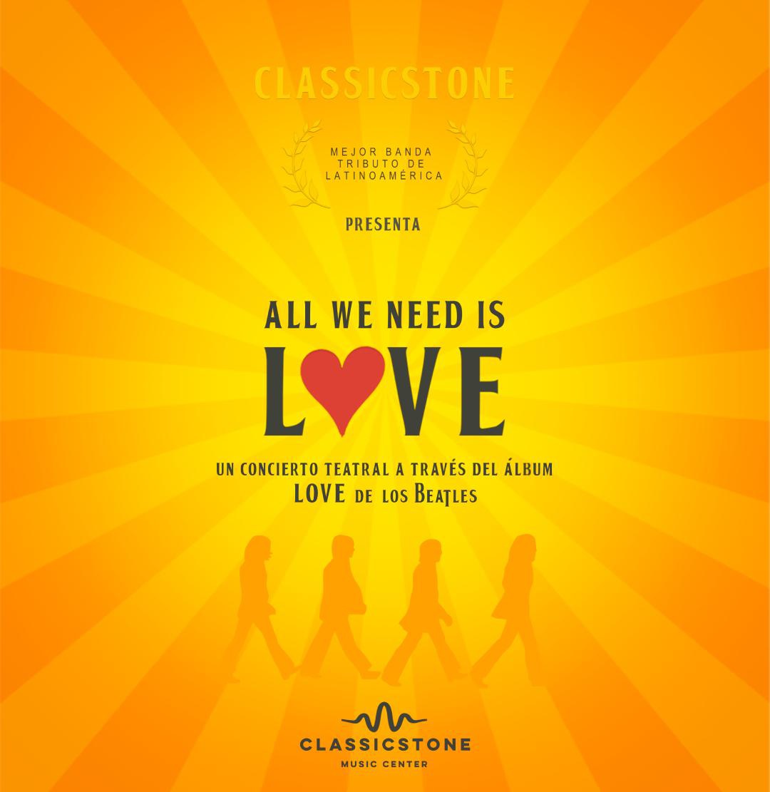 Se trata de The Beatles – All We Need Is Love, una puesta en escena que fusiona concierto con teatro, a través del icónico álbum LOVE del cuarteto de Liverpool. Con una propuesta visual de alto impacto, una narrativa emocional y la interpretación en vivo de Classicstone, reconocida como la mejor banda tributo a The Beatles en Latinoamérica, el show promete ser una experiencia única e irrepetible.