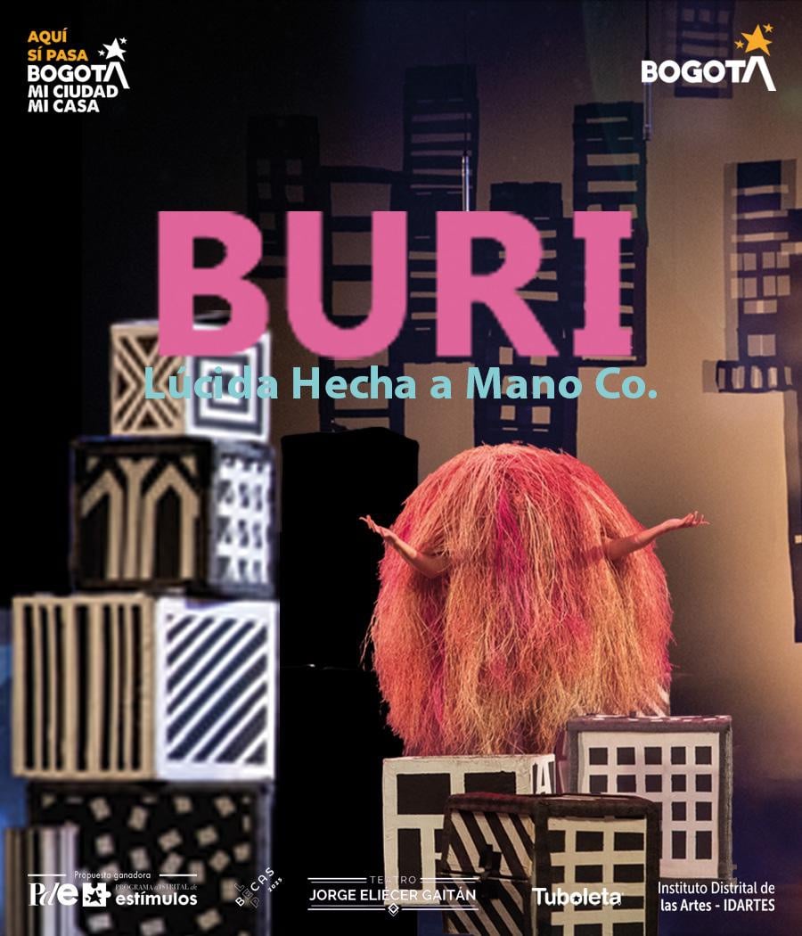 Minutos después de llegar al mundo, Buri descubre que su voz, su pelo y su tamaño son distintos a los de los demás. Tras una terrible catástrofe, Buri es expulsado de su ciudad por los habitantes blancos e inicia un viaje místico lleno de posibilidades, atravesando montañas, océanos y selvas hasta encontrar su verdadero hogar. Partiendo del ensamblaje de diferentes lenguajes escénicos como la manipulación de títeres de cuerpo prestado, mascarones, teatro negro y teatro de sombras la compañía Lúcida hecha a Mano configura el universo plástico de Buri que cautivará con estímulos sonoros y visuales al público infantil.