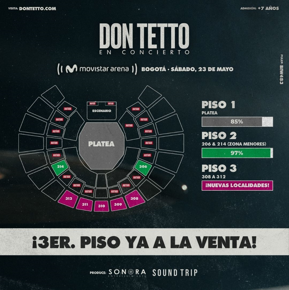 En este evento público se permite el ingreso de menores de edad. El Movistar Arena ha habilitados los sectores 206, 214, 306 y 314 como Zonas Libres de Alcohol, donde no habrá venta ni consumo de bebidas embriagantes. No obstante, es responsabilidad de quien ejerce la patria potestad definir el lugar donde el menor disfrutará del espectáculo, se RECOMIENDA que los menores de edad se ubiquen en estas zonas para su comodidad.