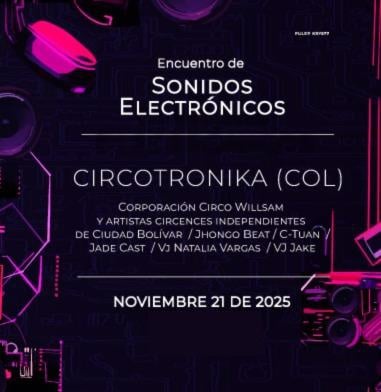 El Teatro El Ensueño presenta el Encuentro de Sonidos Electrónicos: Circotrónika. Este show interdisciplinario que fusiona música electrónica en vivo, visuales en tiempo real y expresión circense, ofrece una experiencia inmersiva y sensorial. DJs que combinan ritmos colombianos y latinos con sonoridades electrónicas, creando una mezcla potente y envolvente que conecta tradición y vanguardia. Su set será acompañado por percusión menor y proyecciones tipo mapping.