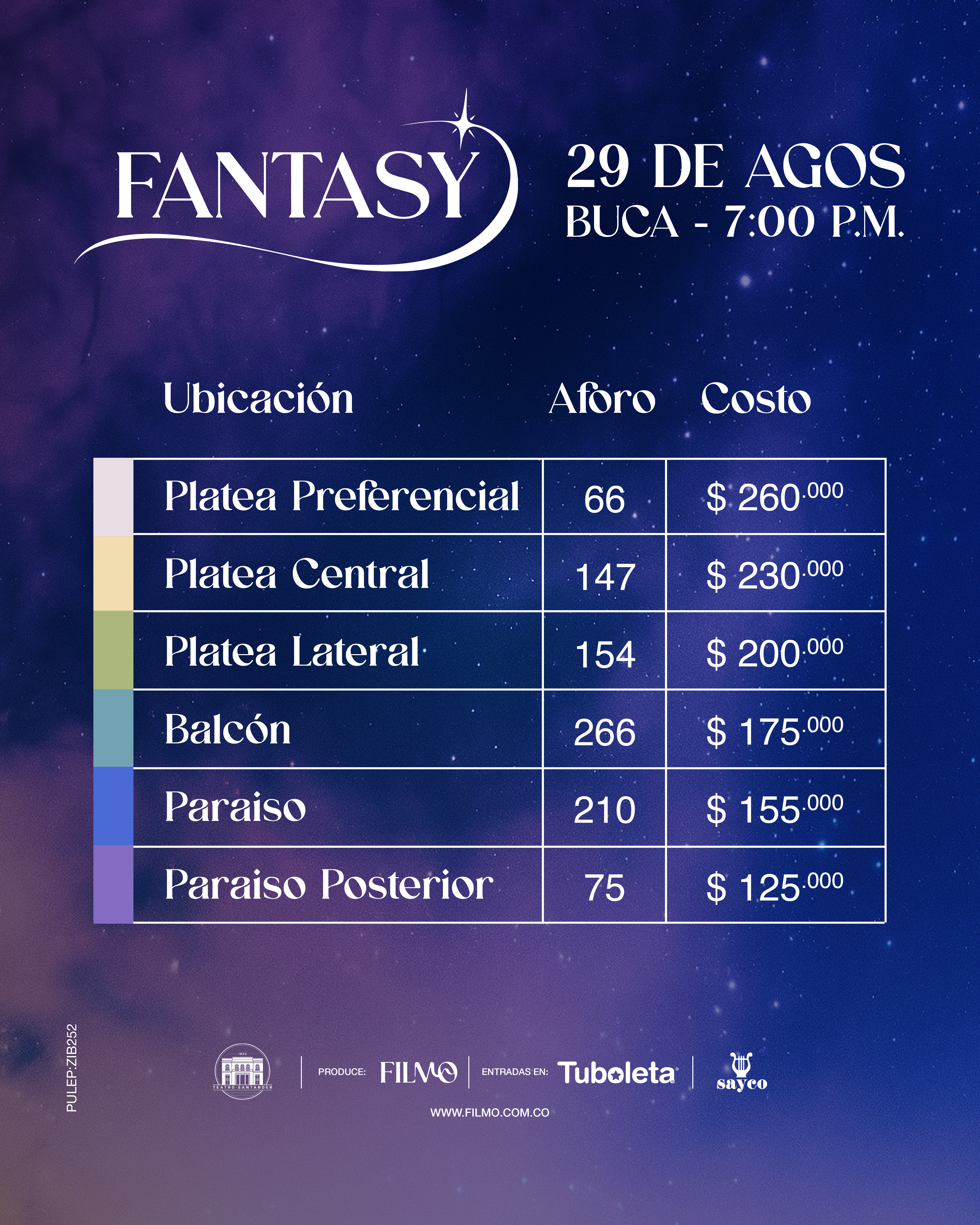 | Platea Central | $230.000 + $30.200 | 147 |