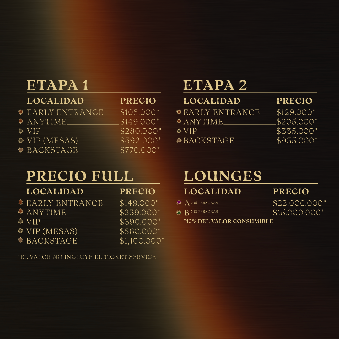 | Early Entrance | $129.000 + $23.300 | 200 |