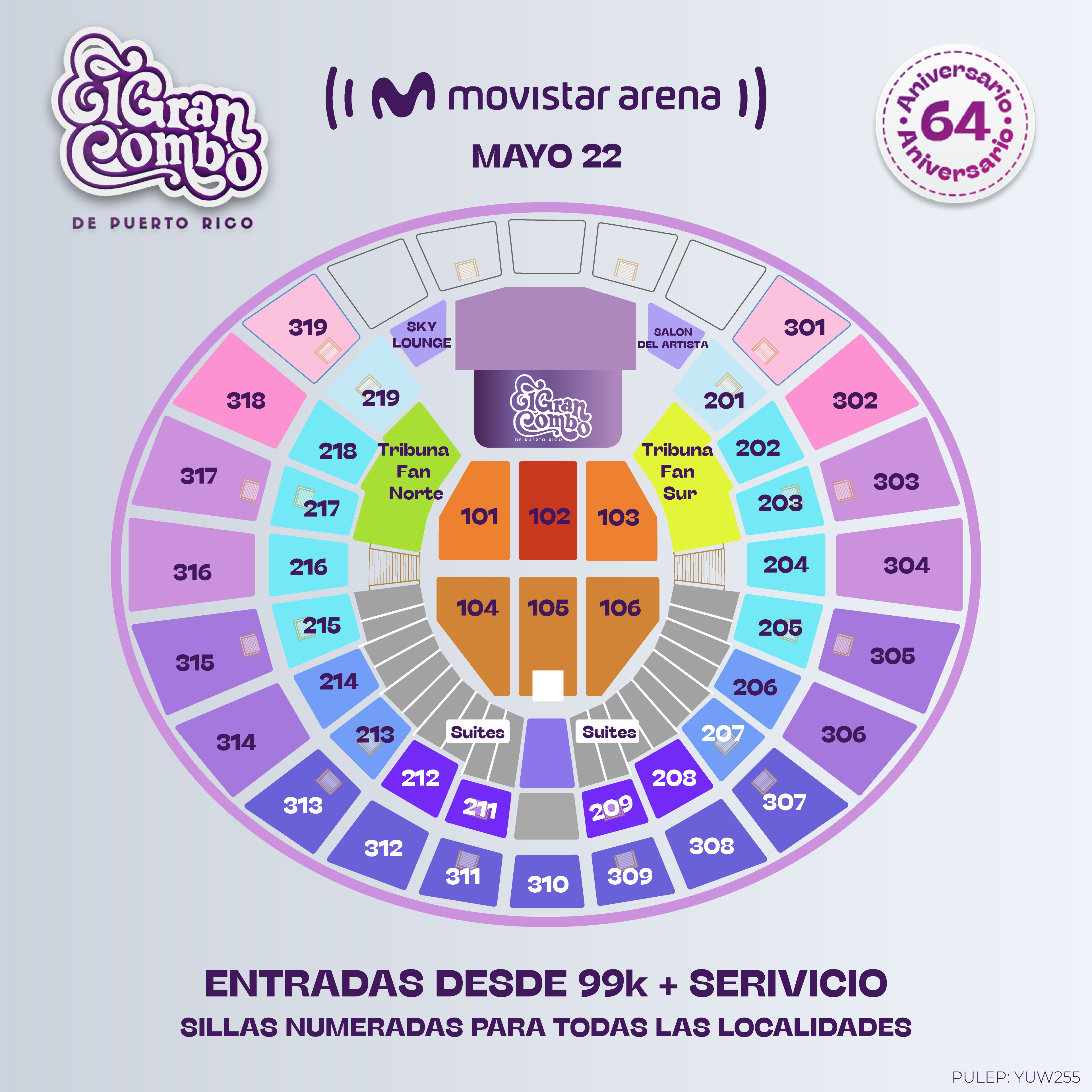 | Tribuna Fan Sur | $490.000 + $87.500 | 109 |