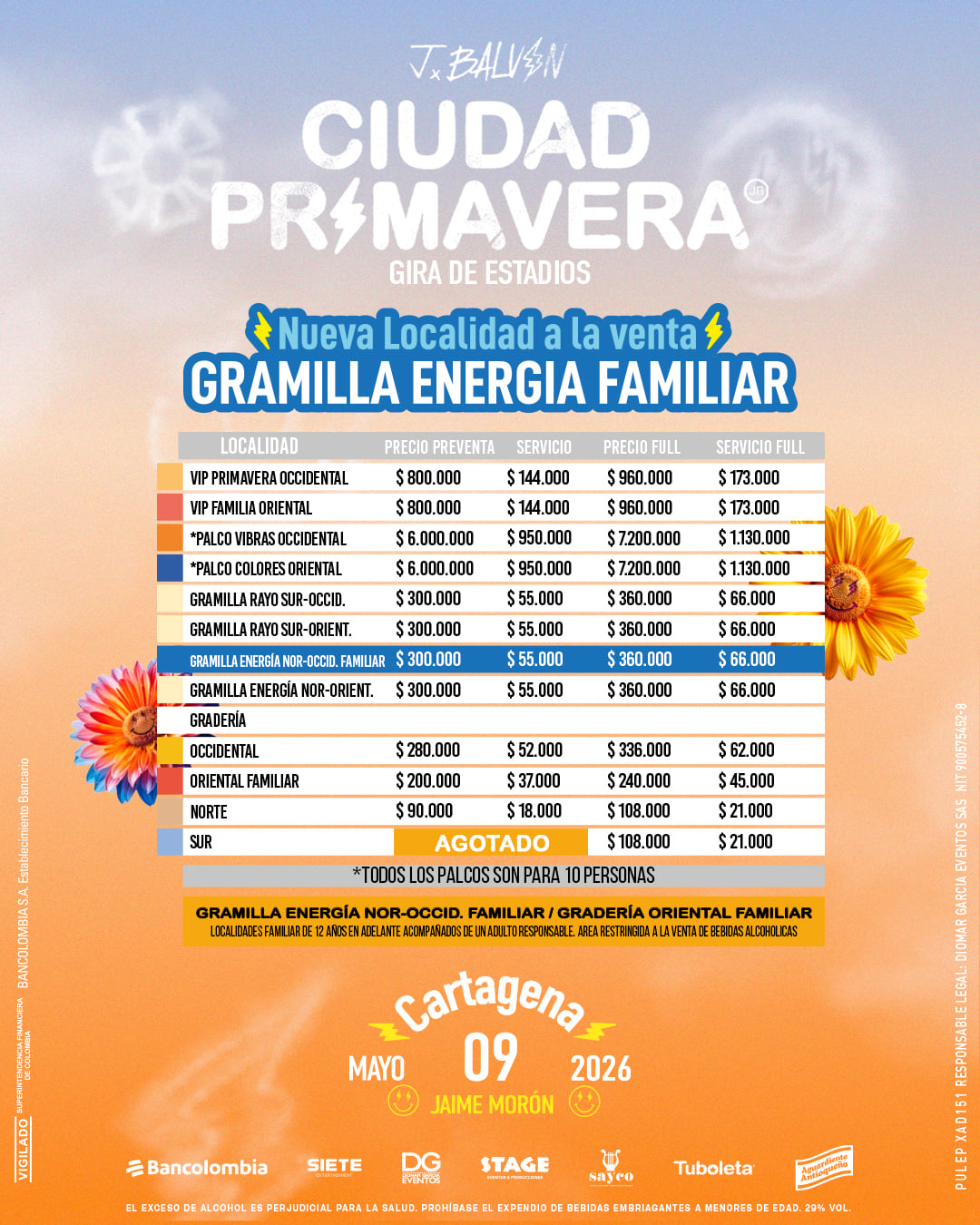 | Palcos Vibras Occidental | $600.000 + $95.000 | 600 |