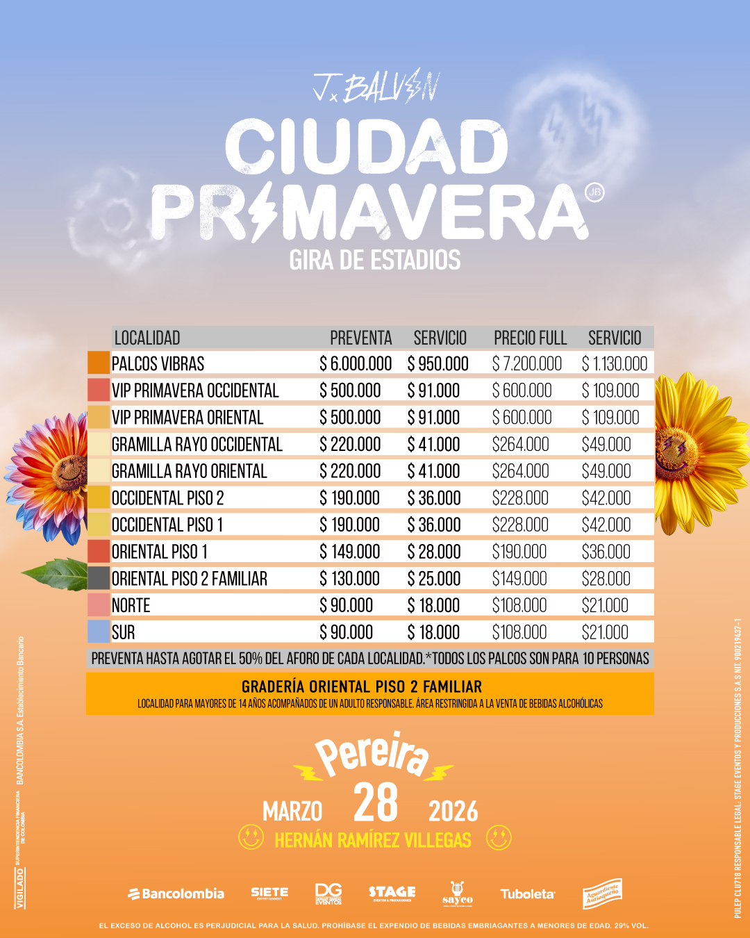 - Etapa 1 - Precio de Preventa: Viernes 26 de diciembre a las 10:00 a.m. hasta el 28 de diciembre a las 9:59 a.m, o hasta agotar el aforo designado para la etapa. Aplica Términos y Condiciones >>