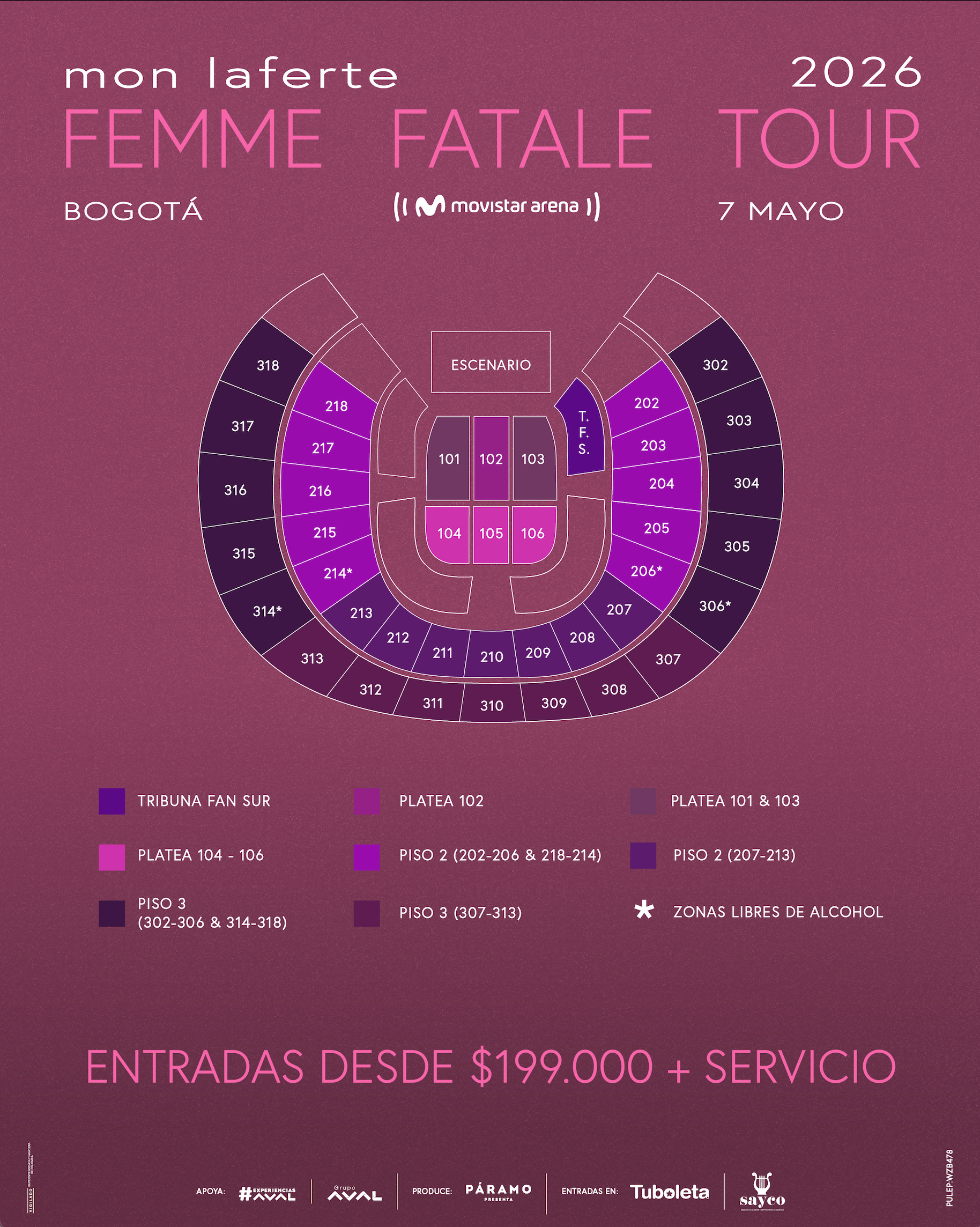 Mon Laferte, una de las voces más poderosas y auténticas de Latinoamérica, regresa a Bogotá el 7 de mayo de 2026 para presentarse en el Movistar Arena con su gira Femme Fatale.