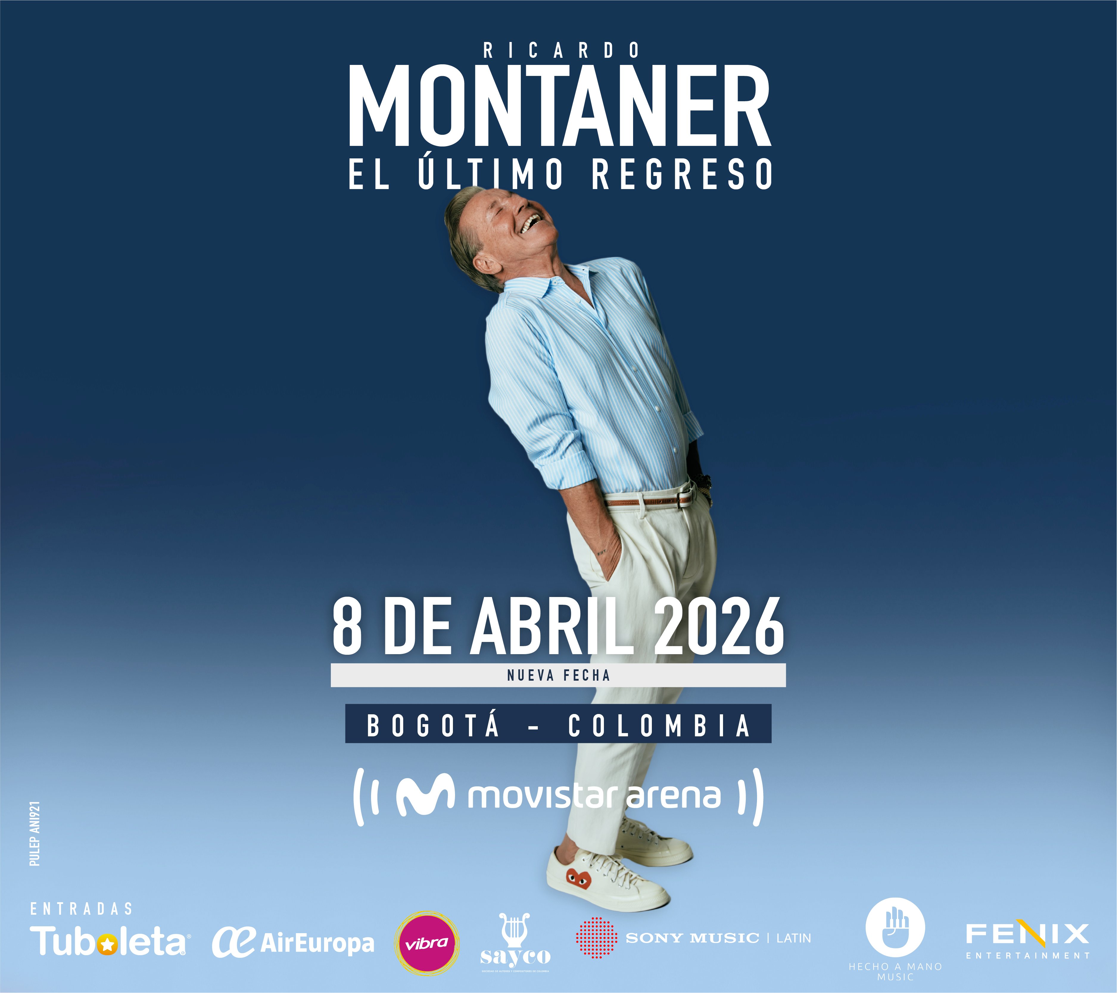 El 8 de abril de 2026, el Movistar Arena de Bogotá abrirá nuevamente sus puertas para recibir a Ricardo Montaner, quien suma una segunda fecha de su aclamado espectáculo “El Último Regreso Tour”, tras el éxito en ventas de su primera presentación en la capital.