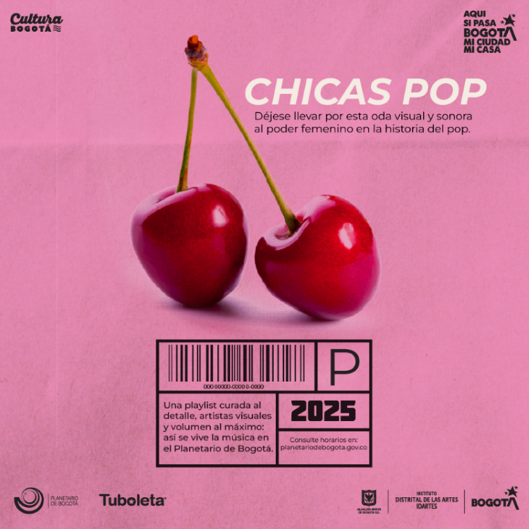 Una experiencia sonora y visual que rinde homenaje a las grandes voces femeninas del pop. Chicas Pop es una playlist curada especialmente para el domo del Planetario de Bogotá, donde íconos de diferentes generaciones —desde los años 70 hasta los 2010— se entrelazan en un recorrido vibrante y emocional.