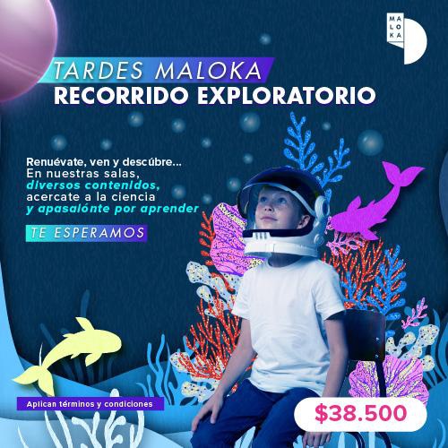 TARDES MALOKA Selección de fecha 27/02/2026 - 13:00 27/02/2026 - 14:00 27/02/2026 - 15:00 27/02/2026 - 16:00 27/02/2026 - 17:00 28/02/2026 - 13:00 28/02/2026 - 14:00 28/02/2026 - 15:00 28/02/2026 - 16:00 27 Feb 2026 Bogotá Maloka Elegir horario Elegir horario Desde $38.500 Localidad y precios Audiencia Precio + Servicio Total ADULTO $38.500 + $0 $38.500 Comprar entradas Canal de venta