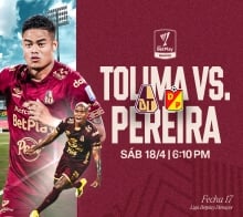 Tolima vs Pereira 2026-1 Estadio Manuel Murillo Toro Ibagué 18 Abr Sáb 18 Abr Tolima vs Pereira 2026-1 Ibagué 15 Abr Mié
