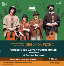VELOSA Y LOS CARRANGUEROS DEL 25 Teatro el Ensueño - Tv 70 D # 60 - 90 sur, Bogotá Bogotá Desde 15 Nov Sáb 15 Nov Hasta 22 Nov Sáb 22 Nov VELOSA Y LOS CARRANGUEROS DEL 25 Bogotá 16 Nov Dom