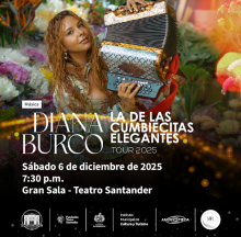 “La de Las Cumbiecitas Elegantes Tour 2025” - Diana Burco Teatro Santander Bucaramanga 6 Dic Sáb 6 Dic “La de Las Cumbiecitas Elegantes Tour 2025” - Diana Burco Bucaramanga 16 Nov Dom