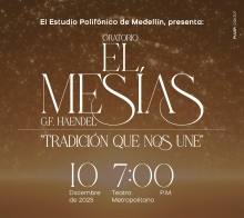 EL MESIAS J.F HANDEL Teatro Metropolitano de Medellín Medellín 10 Dic Mié 10 Dic EL MESIAS J.F HANDEL Medellín 16 Nov Dom