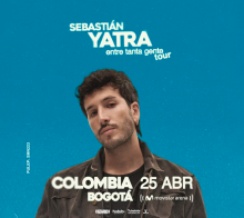 SEBASTIAN YATRA | ENTRE TANTA GENTE TOUR Movistar Arena BOGOTA 25 Abr Sáb 25 Abr SEBASTIAN YATRA | ENTRE TANTA GENTE TOUR BOGOTA 1 Abr Mié