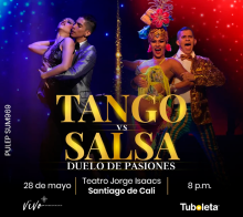 TANGO VS SALSA "Duelo de pasiones" - CALI Teatro Jorge Isaacs - Cra. 3 #12-28 Cali Cali 28 Mayo Jue 28 Mayo TANGO VS SALSA "Duelo de pasiones" - CALI Cali 1 Abr Mié