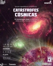 Show inmersivo científico: Catástrofes cósmicas Planetario de Bogotá Bogotá 10 Abr Vie 10 Abr Show inmersivo científico: Catástrofes cósmicas Bogotá 1 Abr Mié