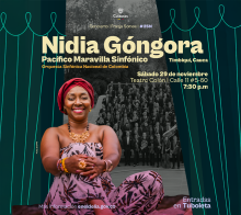 Nidia Góngora - Pacífico Maravilla Sinfónico Centro Nacional de las artes - Sala Teatro Colón cll10 #5-32 Bogotá 29 Nov Sáb 29 Nov Nidia Góngora - Pacífico Maravilla Sinfónico Bogotá 16 Nov Dom