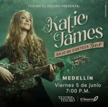 KATIE JAMES - BAJO MI CORTEZA TOUR Teatro El Tesoro Medellín 5 Jun Vie 5 Jun KATIE JAMES - BAJO MI CORTEZA TOUR Medellín 12 Mar Jue