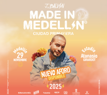 J BALVIN MADE IN MEDELLIN Estadio Atanasio Girardot Medellín 29 Nov Sáb 29 Nov J BALVIN MADE IN MEDELLIN Medellín 30 Oct Jue