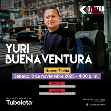 Yuri Buenaventura lanza álbum Ámame y éxitos de siempre Teatro Colsubsidio Bogotá 8 Nov Sáb 8 Nov Yuri Buenaventura lanza álbum Ámame y éxitos de siempre Bogotá 30 Oct Jue