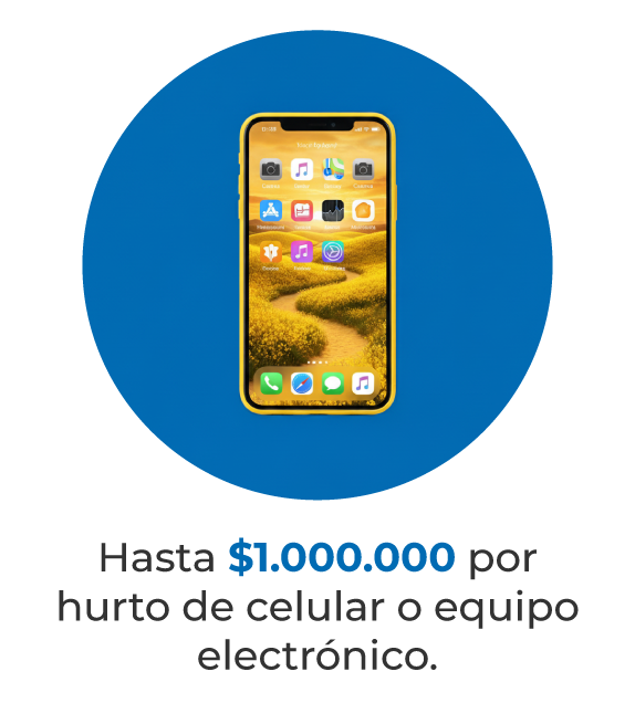 - Hurto de equipo electrónico (celular o computador portátil): hasta $1.000.000.
