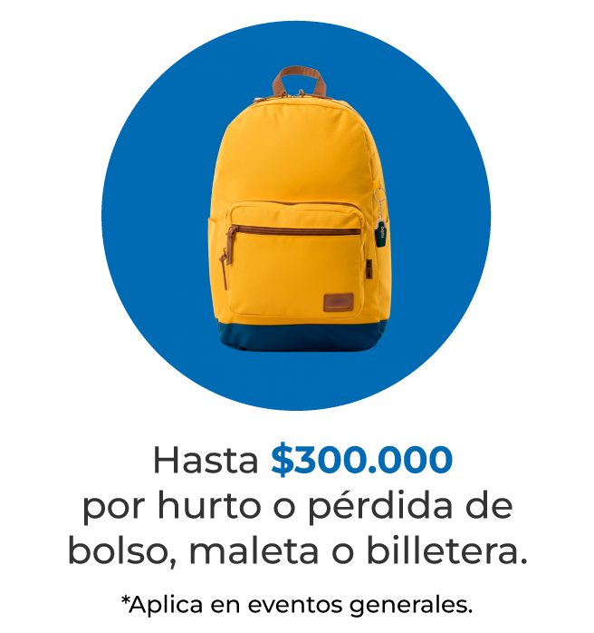 - Hurto de bolso, maleta o billetera: hasta $300.000. (Aplica solo para eventos generales)