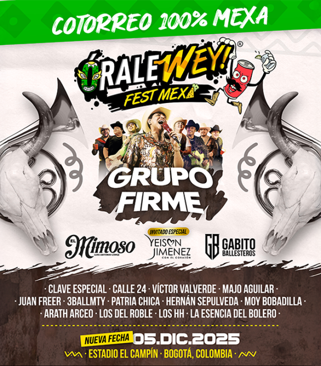 Destacados FRANCIS MERCIER- SOLÈY Jardín Botánico - Orquideorama Medellín 30 Nov Dom 30 Nov Navidad en espiral Teatro Metropolitano de Medellín Medellín 30 Nov Dom 30 Nov ALL WE NEED IS LOVE Teatro Astor Plaza Bogotá 03 Dic Mié 03 Dic DAVID GARRETT | MILLENNIUM SYMPHONY WORLD TOUR 2025 Teatro Jorge Eliécer Gaitán Bogotá 03 Dic Mié 03 Dic CAZZU | LATINAJE EN VIVO Movistar Arena Bogotá 04 Dic Jue 04 Dic BORIS BREJCHA | REFLECTIONS TOUR 2025 - BOGOTÁ Movistar Arena Bogotá 05 Dic Vie 05 Dic ORALE WEY | FEST MEXA - SEGUNDA FECHA Estadio El Campín Bogotá 05 Dic Vie 05 Dic Mostrar más eventos