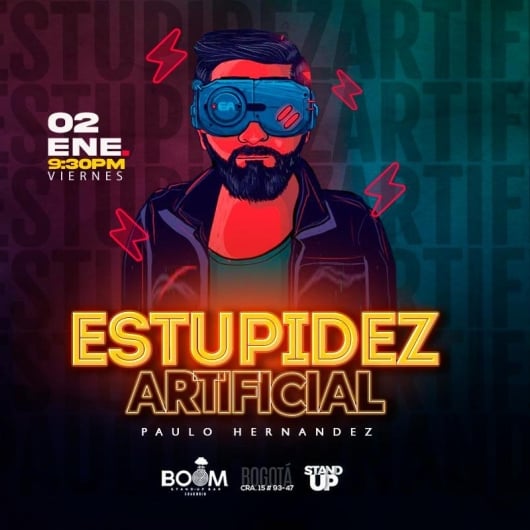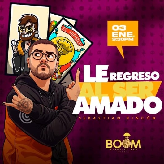 Destacados ME DEJÓ UNA CHIVA Boom Stand Up Bar - Bogotá Bogotá 30 Dic Mar 30 Dic OPEN MIC - MEDELLÍN BOOM STAND UP BAR - Cl. 26 #43g-30 BARRIO COLOMBIA Medellín 02 Ene Vie 02 Ene LA VUELTA AL MUNDO EN 80 PLONES - BOGOTÁ Boom Stand Up Bar - Bogotá Bogotá 02 Ene Vie 02 Ene ESTUPIDEZ ARTIFICIAL - BOGOTÁ Boom Stand Up Bar - Bogotá Bogotá 02 Ene Vie 02 Ene LIGA DE CAMPEONES - MEDELLÍN BOOM STAND UP BAR - Cl. 26 #43g-30 BARRIO COLOMBIA Medellín 03 Ene Sáb 03 Ene AESTHETIC SHOW - BOGOTÁ Boom Stand Up Bar - Bogotá Bogotá 03 Ene Sáb 03 Ene LE REGRESO AL SER AMADO - BOGOTÁ Boom Stand Up Bar - Bogotá Bogotá 03 Ene Sáb 03 Ene Mostrar más eventos Movistar Arena Dg. 61c #26-36, Teusaquillo Teatro Julio Mario Santodomingo Cl. 170 #67-51 Teatro Colsubsidio Av. El Dorado #25-40, Bogotá Maloka Centro Interactivo Maloka, Cra. 68d #24A - 51 Teatro CAFAM Ak 68 #90 - 88 Centro Nacional de las Artes Cl. 11 #5 - 60 Teatro Metropolitano Cl. 41 # 57 - 30, La Candelaria, Medellín. Teatro El Tesoro Carrera 25A # 1A Sur - 45 Medellín. Teatro El Ensueño Tv. 70 D #60-90, Sur, Bogotá Teatro Jorge Eliécer Gaitán Cra. 7 #22-47, Santa Fé, Bogotá. Teatro La Concha Calle 4 #10-48, Cali