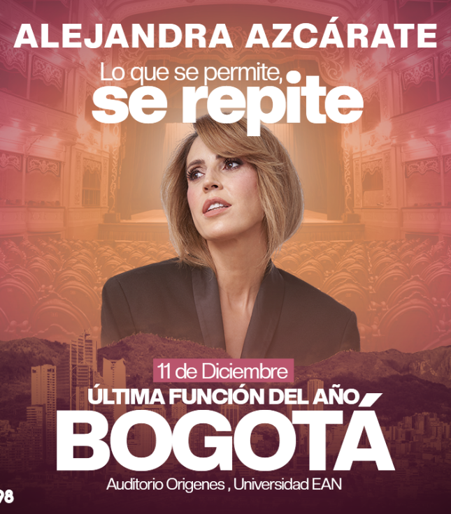 Destacados LO QUE SE PERMITE SE REPITE - BOGOTÁ 11DIC AUDITORIO UNIVERSIDAD E.A.N. Bogotá 11 Dic Jue 11 Dic DESOBEDIENTE - BOGOTÁ Boom Stand Up Bar - Bogotá Bogotá Desde 12 Dic Vie 12 Dic Hasta 13 Dic Sáb 13 Dic CHARLOT Y LA FÁBRICA DE CHOCOLATES Teatro El Parque Bogotá Desde 12 Dic Vie 12 Dic Hasta 14 Dic Dom 14 Dic PIEZAS CORTAS: BALLET Y CIRCO Teatro El Parque Bogotá Desde 12 Dic Vie 12 Dic Hasta 14 Dic Dom 14 Dic “Gruñe, ladra, aúlla, muerde” de Jimena Reppetto Sala Gaitán Bogotá Desde 12 Dic Vie 12 Dic Hasta 13 Dic Sáb 13 Dic FRAGMENTADO- BOGOTÁ La Casa del Oso Bogotá 12 Dic Vie 12 Dic POR EL ANILLO - CALI FUNDACIÓN ESCENICA CALI TEATRO - CRA 12 # 4 - 51 Cali 12 Dic Vie 12 Dic Mostrar más eventos Movistar Arena Dg. 61c #26-36, Teusaquillo Teatro Julio Mario Santodomingo Cl. 170 #67-51 Teatro Colsubsidio Av. El Dorado #25-40, Bogotá Maloka Centro Interactivo Maloka, Cra. 68d #24A - 51 Teatro CAFAM Ak 68 #90 - 88 Centro Nacional de las Artes Cl. 11 #5 - 60 Teatro Metropolitano Cl. 41 # 57 - 30, La Candelaria, Medellín. Teatro El Tesoro Carrera 25A # 1A Sur - 45 Medellín. Teatro El Ensueño Tv. 70 D #60-90, Sur, Bogotá Teatro Jorge Eliécer Gaitán Cra. 7 #22-47, Santa Fé, Bogotá. Teatro La Concha Calle 4 #10-48, Cali