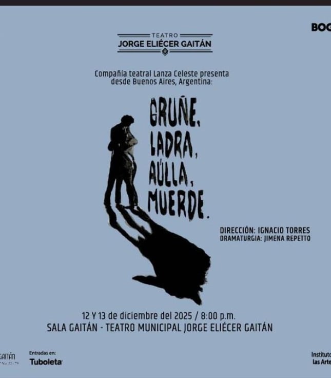 “Gruñe, ladra, aúlla, muerde” de Jimena Reppetto Sala Gaitán Bogotá Desde 12 Dic Vie 12 Dic Hasta 13 Dic Sáb 13 Dic