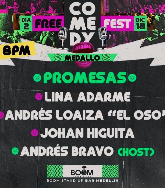 FREE COMEDY FEST - MEDELLIN BOOM STAND UP BAR - Cl. 26 #43g-30 BARRIO COLOMBIA Medellín 18 Dic Jue 18 Dic