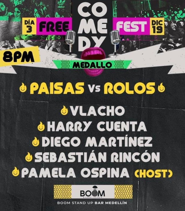 FREE COMEDY FEST - MEDELLIN - DIC19 BOOM STAND UP BAR - Cl. 26 #43g-30 BARRIO COLOMBIA Medellín 19 Dic Vie 19 Dic
