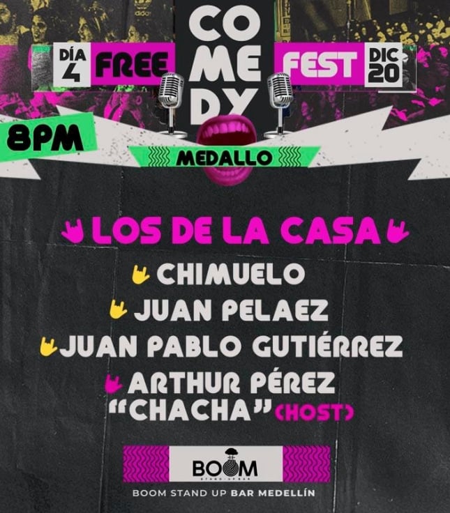 FREE COMEDY FEST - MEDELLIN - DIC 20 BOOM STAND UP BAR - Cl. 26 #43g-30 BARRIO COLOMBIA Medellín 20 Dic Sáb 20 Dic
