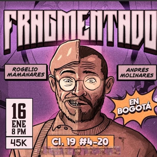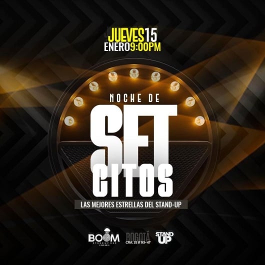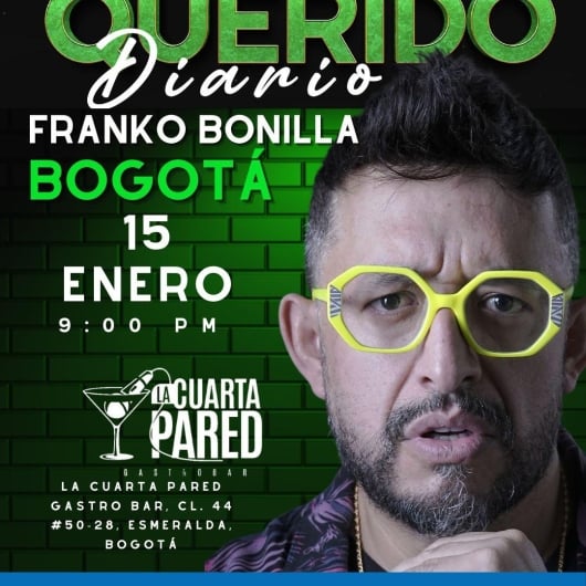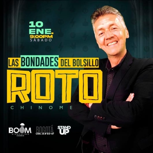 Destacados LAS BONDADES DEL BOLSILLO ROTO - BOGOTÁ Boom Stand Up Bar - Bogotá Bogotá 10 Ene Sáb 10 Ene EL BUEN JUANMA EN MEDALLO - MEDELLÍN BOOM STAND UP BAR - Cl. 26 #43g-30 BARRIO COLOMBIA Medellín 10 Ene Sáb 10 Ene GORDCONSEJOS Boom Stand Up Bar - Bogotá Bogotá Desde 13 Ene Mar 13 Ene Hasta 27 Ene Mar 27 Ene NOCHE DE SETCITOS - BOGOTÁ Boom Stand Up Bar - Bogotá Bogotá 15 Ene Jue 15 Ene QUERIDO DIARIO (15ENE) La Cuadra Pared Gastro Bar - Calle 44 # 50-28 Bogotá 15 Ene Jue 15 Ene FRAGMENTADO - 16 ENERO La Casa del Oso Bogotá 16 Ene Vie 16 Ene NO SOY MK, SOY GOMELO - MEDELLÍN BOOM STAND UP BAR - Cl. 26 #43g-30 BARRIO COLOMBIA Medellín 16 Ene Vie 16 Ene Mostrar más eventos Movistar Arena Dg. 61c #26-36, Teusaquillo Teatro Julio Mario Santodomingo Cl. 170 #67-51 Teatro Colsubsidio Av. El Dorado #25-40, Bogotá Maloka Centro Interactivo Maloka, Cra. 68d #24A - 51 Teatro CAFAM Ak 68 #90 - 88 Centro Nacional de las Artes Cl. 11 #5 - 60 Teatro Metropolitano Cl. 41 # 57 - 30, La Candelaria, Medellín. Teatro El Tesoro Carrera 25A # 1A Sur - 45 Medellín. Teatro El Ensueño Tv. 70 D #60-90, Sur, Bogotá Teatro Jorge Eliécer Gaitán Cra. 7 #22-47, Santa Fé, Bogotá. Teatro La Concha Calle 4 #10-48, Cali