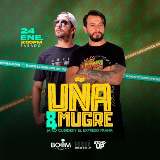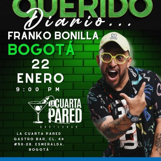 Destacados ES REAL? - MEDELLÍN BOOM STAND UP BAR - Cl. 26 #43g-30 BARRIO COLOMBIA Medellín 17 Ene Sáb 17 Ene EL EVANGELIO SEGÚN RAFAEL - BOGOTÁ Boom Stand Up Bar - Bogotá Bogotá 17 Ene Sáb 17 Ene QUERIDO DIARIO (22ENE) La Cuadra Pared Gastro Bar - Calle 44 # 50-28 Bogotá 22 Ene Jue 22 Ene VALENTIA - MEDELLÍN BOOM STAND UP BAR - Cl. 26 #43g-30 BARRIO COLOMBIA Medellín 22 Ene Jue 22 Ene LA PELOTA DE LETRAS Teatro Cafam - Av. Car 68 No. 90 - 88 Bogotá Desde 23 Ene Vie 23 Ene Hasta 01 Feb Dom 01 Feb RANDOM JOKES - MEDELLÍN BOOM STAND UP BAR - Cl. 26 #43g-30 BARRIO COLOMBIA Medellín 23 Ene Vie 23 Ene UÑA Y MUGRE - BOGOTÁ Boom Stand Up Bar - Bogotá Bogotá 24 Ene Sáb 24 Ene Mostrar más eventos Movistar Arena Dg. 61c #26-36, Teusaquillo Teatro Julio Mario Santodomingo Cl. 170 #67-51 Teatro Colsubsidio Av. El Dorado #25-40, Bogotá Maloka Centro Interactivo Maloka, Cra. 68d #24A - 51 Teatro CAFAM Ak 68 #90 - 88 Centro Nacional de las Artes Cl. 11 #5 - 60 Teatro Metropolitano Cl. 41 # 57 - 30, La Candelaria, Medellín. Teatro El Tesoro Carrera 25A # 1A Sur - 45 Medellín. Teatro El Ensueño Tv. 70 D #60-90, Sur, Bogotá Teatro Jorge Eliécer Gaitán Cra. 7 #22-47, Santa Fé, Bogotá. Teatro La Concha Calle 4 #10-48, Cali