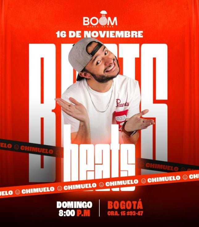 Destacados NOVIEMBRE SIN TI - RADI Y JUAN K (15 NOV) BOOM STAND UP BAR - Cl. 26 #43g-30 BARRIO COLOMBIA Medellín 15 Nov Sáb 15 Nov CASI FAMOSO Boom Stand Up Bar - Bogotá Bogotá 15 Nov Sáb 15 Nov CHAMAN - YAWAR - FIESTA DE SANGRE Centro de Danza - La Licorera Cali 16 Nov Dom 16 Nov El rabo entre las piernas Teatro Escuela Bucaramanga 16 Nov Dom 16 Nov Los Cachaquitos Teatro El Parque Bogotá 16 Nov Dom 16 Nov ACABA COLOMBIA 2025Ni gloria inmarcesible,ni júbilo inmortal Centro Nacional de las artes - Sala Teresita Gómez Bogotá 16 Nov Dom 16 Nov BEATS - BOGOTÁ (16 NOVIEMBRE) Boom Stand Up Bar - Bogotá Bogotá 16 Nov Dom 16 Nov Mostrar más eventos Movistar Arena Dg. 61c #26-36, Teusaquillo Teatro Julio Mario Santodomingo Cl. 170 #67-51 Teatro Colsubsidio Av. El Dorado #25-40, Bogotá Maloka Centro Interactivo Maloka, Cra. 68d #24A - 51 Teatro CAFAM Ak 68 #90 - 88 Centro Nacional de las Artes Cl. 11 #5 - 60 Teatro Metropolitano Cl. 41 # 57 - 30, La Candelaria, Medellín. Teatro El Tesoro Carrera 25A # 1A Sur - 45 Medellín. Teatro El Ensueño Tv. 70 D #60-90, Sur, Bogotá Teatro Jorge Eliécer Gaitán Cra. 7 #22-47, Santa Fé, Bogotá. Teatro La Concha Calle 4 #10-48, Cali