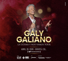 GALY GALIANO | LA ULTIMA Y NOS VAMOS TOUR 2026 Movistar Arena Bogotá 30 Abr Jue 30 Abr GALY GALIANO | LA ULTIMA Y NOS VAMOS TOUR 2026 Bogotá 26 Ene Lun