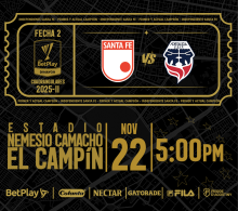 SANTA FE VS FORTALEZA 2025-2 Estadio El Campín Bogotá 22 Nov Sáb 22 Nov SANTA FE VS FORTALEZA 2025-2 Bogotá 20 Nov Jue
